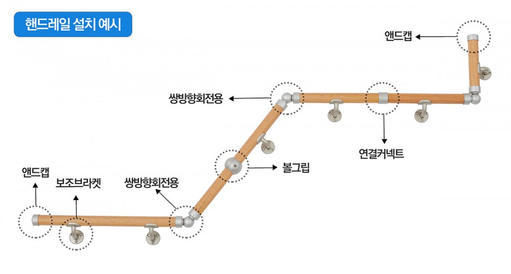 핸드레일 목재 ② 화이트오크 월넛색 Ø35