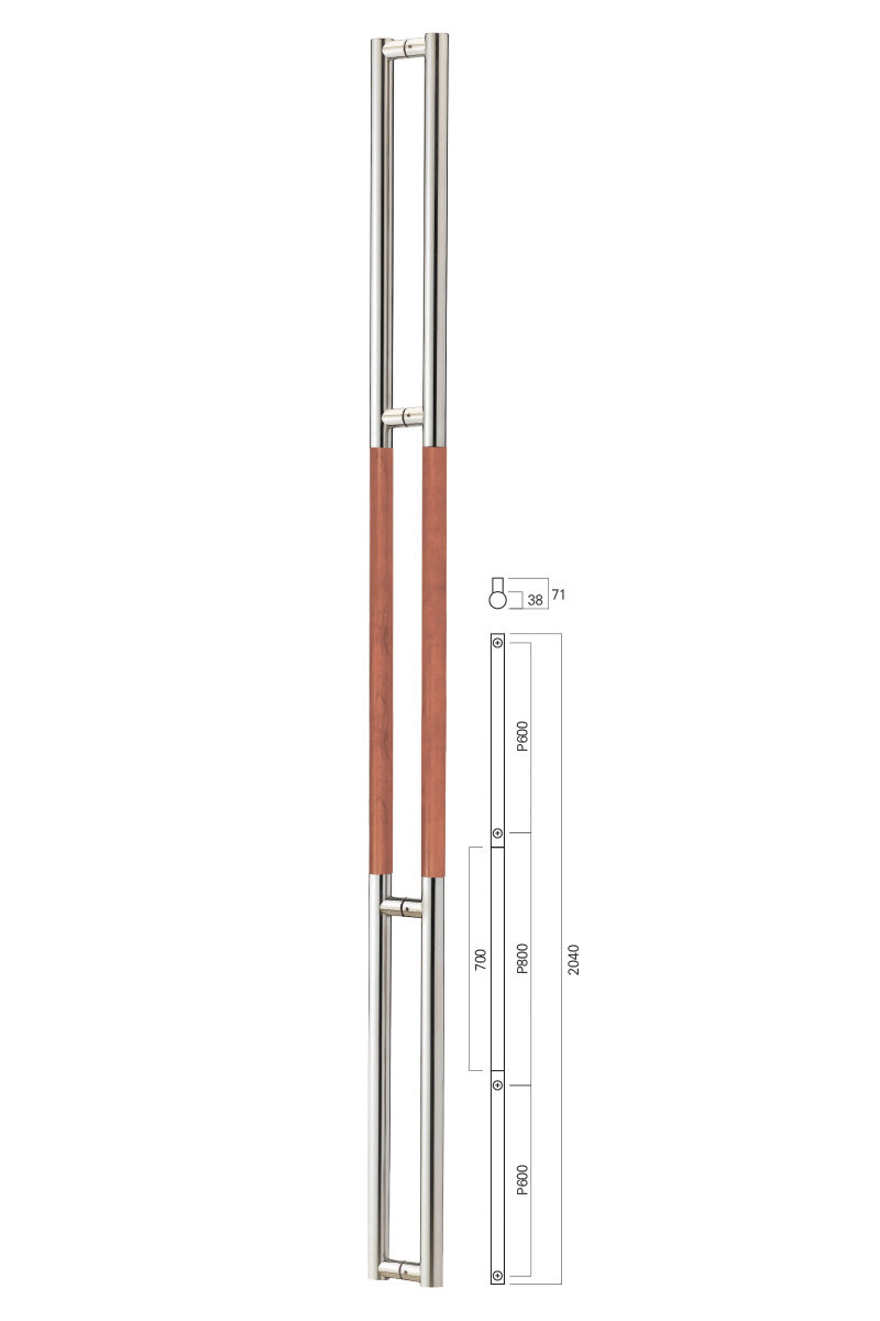 규격 : Ø38 / 2040*2000(센터) (600*800*600) 스테인리스 폴리싱+체리색 우드 주문제작 가능